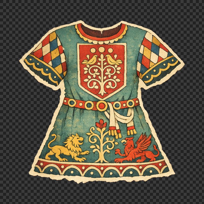 Medieval tunic with heraldic symbols. https://www.rawpixel.com/image/25536139/medieval-tunic-with-heraldic-symbolsView license