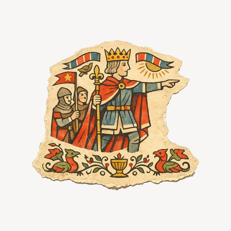 Medieval king leading quest. https://www.rawpixel.com/image/25531188/medieval-king-leading-questView license