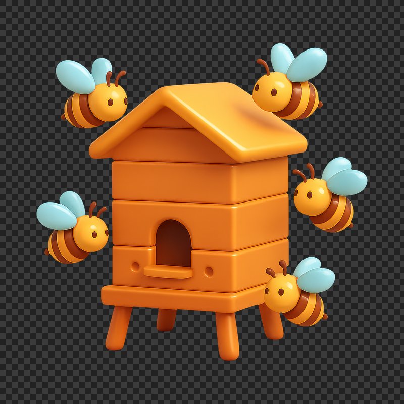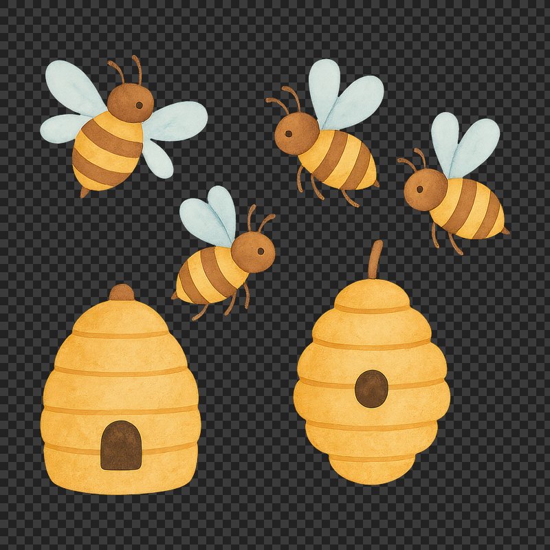 PNG Whimsical bees with charming hives. https://www.rawpixel.com/image/18892889/png-whimsical-bees-with-charming-hivesView license