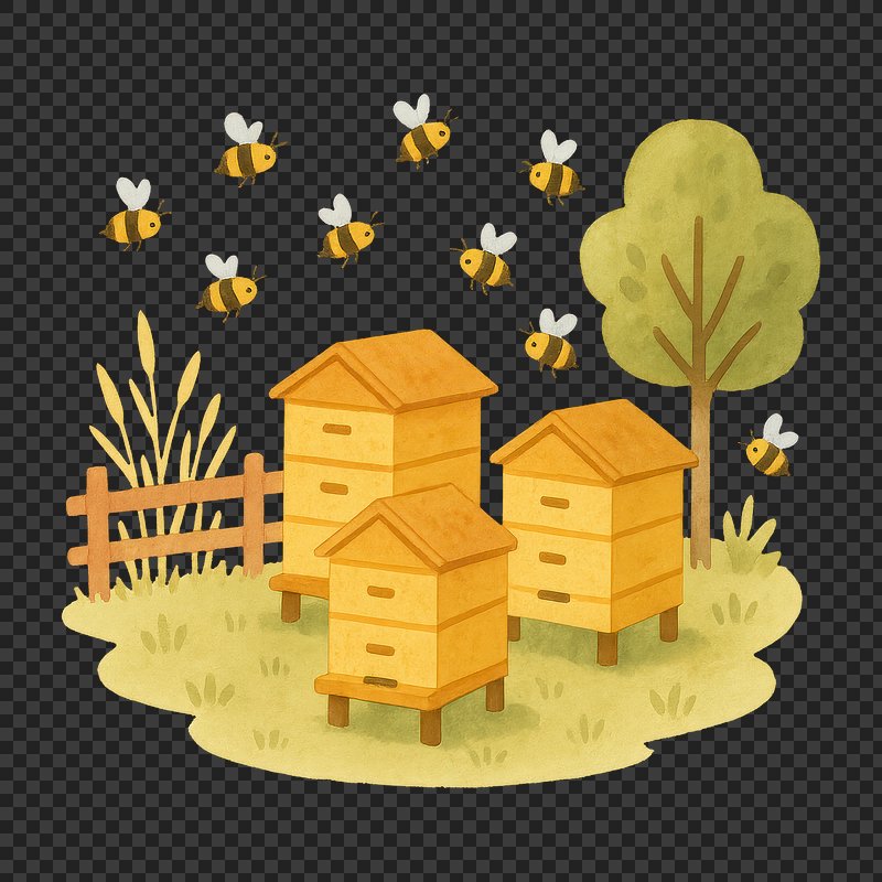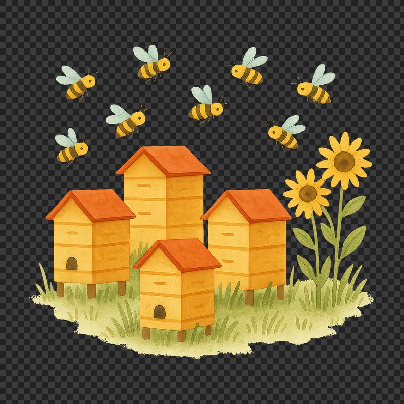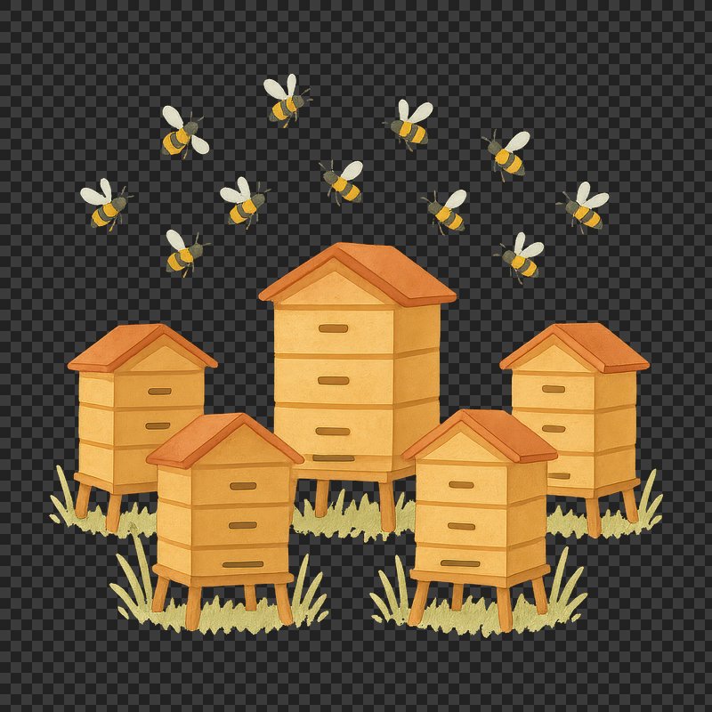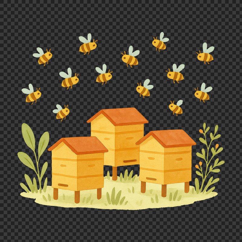 PNG Charming beehives with buzzing bees. https://www.rawpixel.com/image/18975415/png-charming-beehives-with-buzzing-beesView license