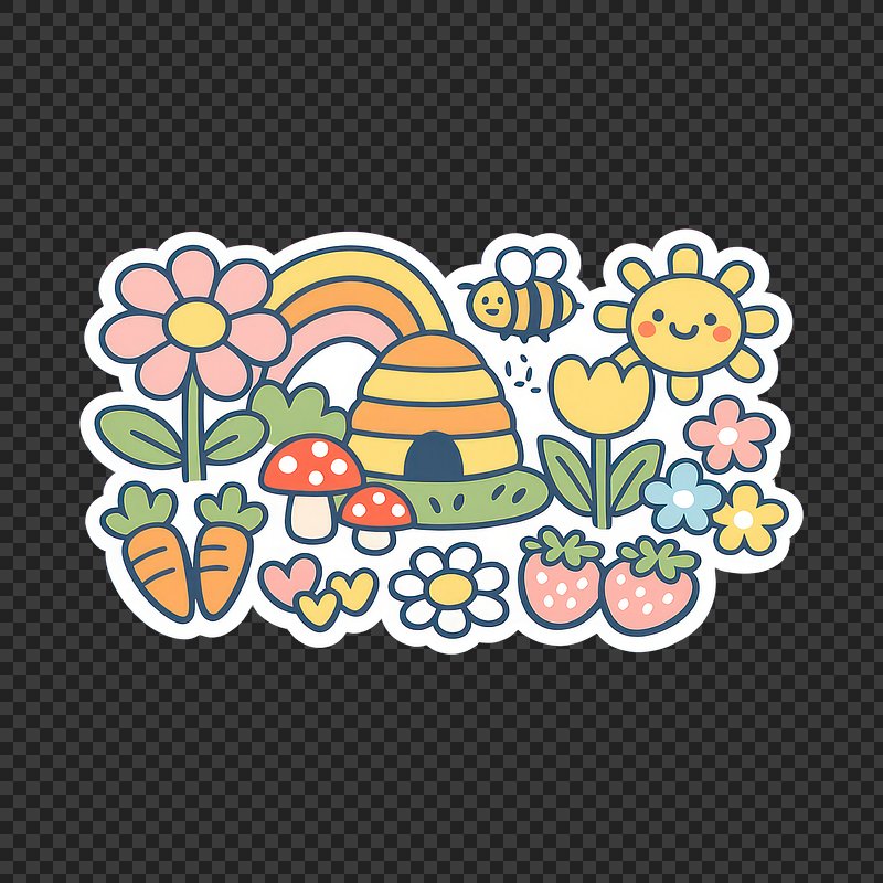 Hand drawn fruit and vegetable sticker with a white border set https://www.rawpixel.com/image/2410143/free-illustration-png-honey-coffee-beeView license