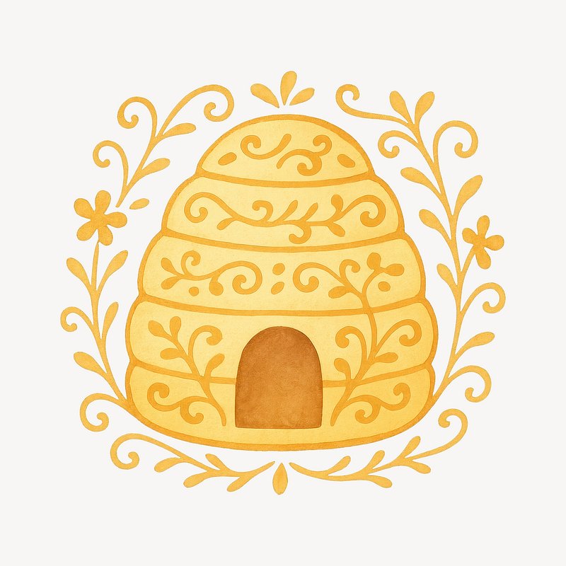 Whimsical beehive illustration for designs. https://www.rawpixel.com/image/20504868/whimsical-beehive-illustration-for-designsView license