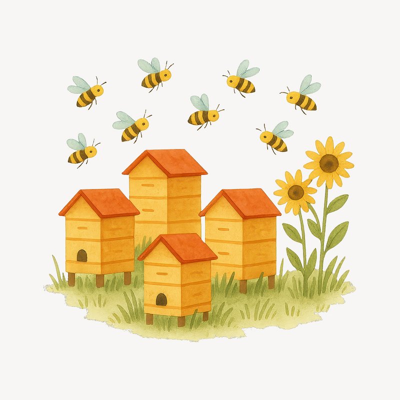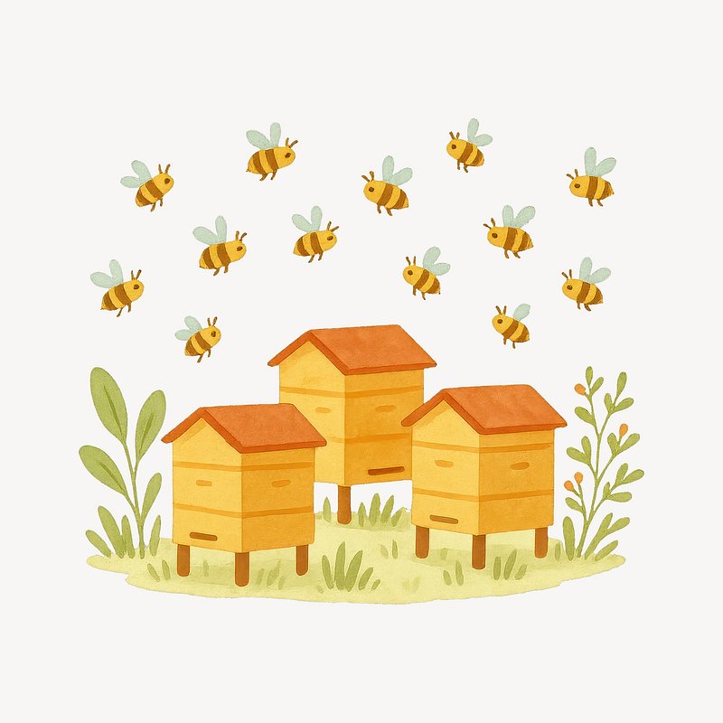 Charming beehives with buzzing bees. https://www.rawpixel.com/image/19453762/charming-beehives-with-buzzing-beesView license