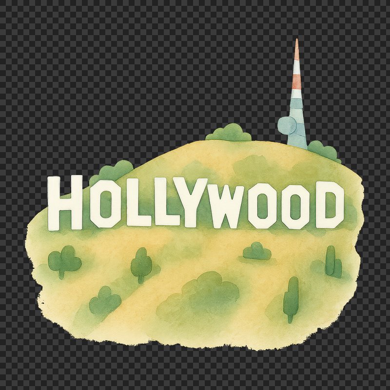 PNG Iconic Hollywood sign illustration. https://www.rawpixel.com/image/18688376/png-iconic-hollywood-sign-illustrationView license