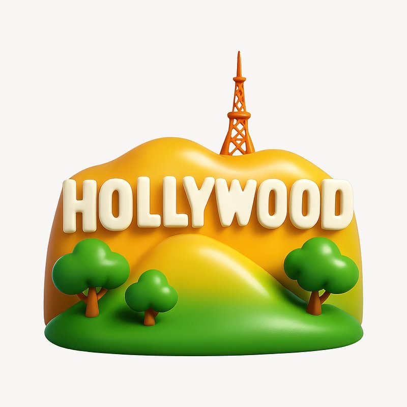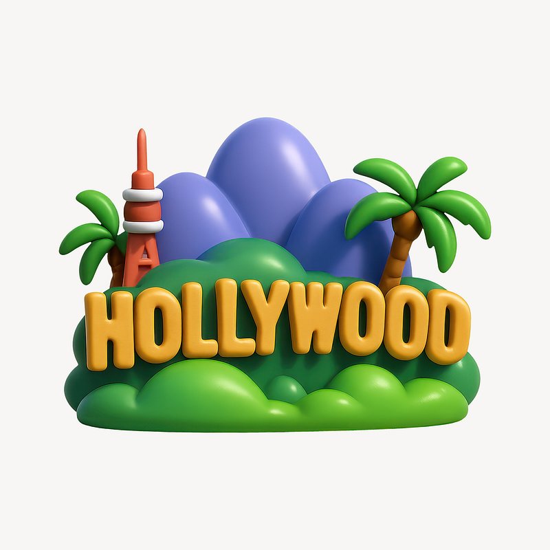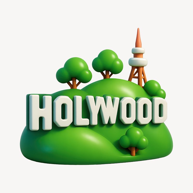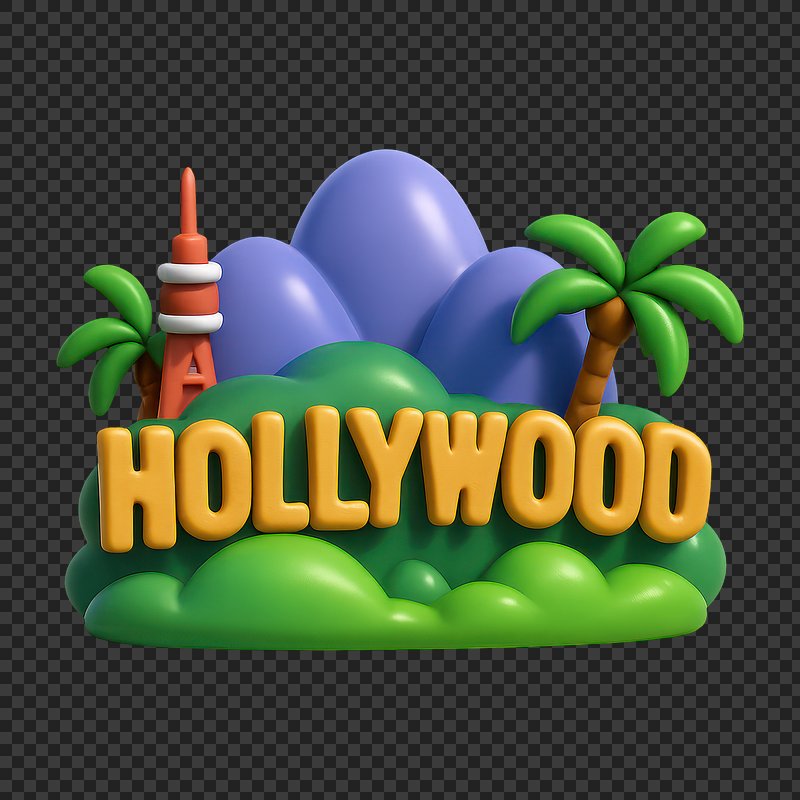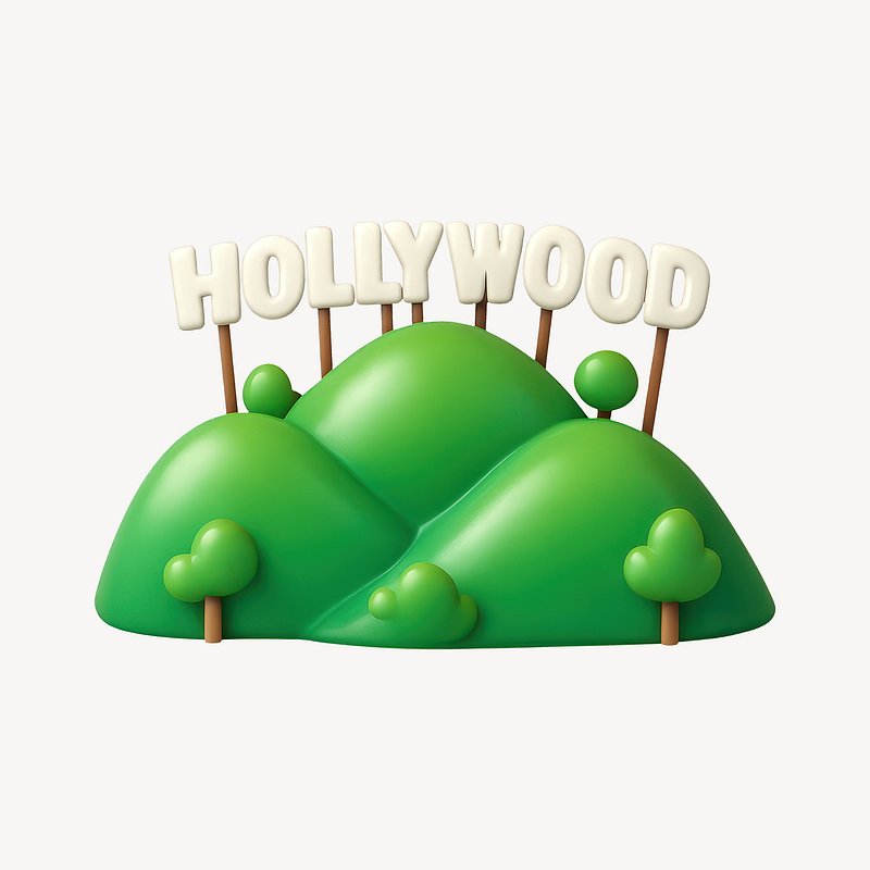 Playful 3D Hollywood sign illustration. https://www.rawpixel.com/image/20728010/playful-hollywood-sign-illustrationView license
