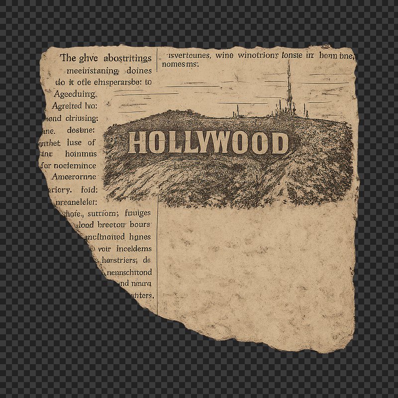 PNG Vintage Hollywood newspaper fragment. https://www.rawpixel.com/image/20327265/png-vintage-hollywood-newspaper-fragmentView license