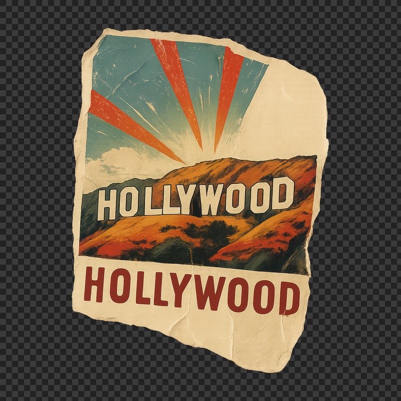 Vintage Hollywood sign art. https://www.rawpixel.com/image/24569532/vintage-hollywood-sign-artView license