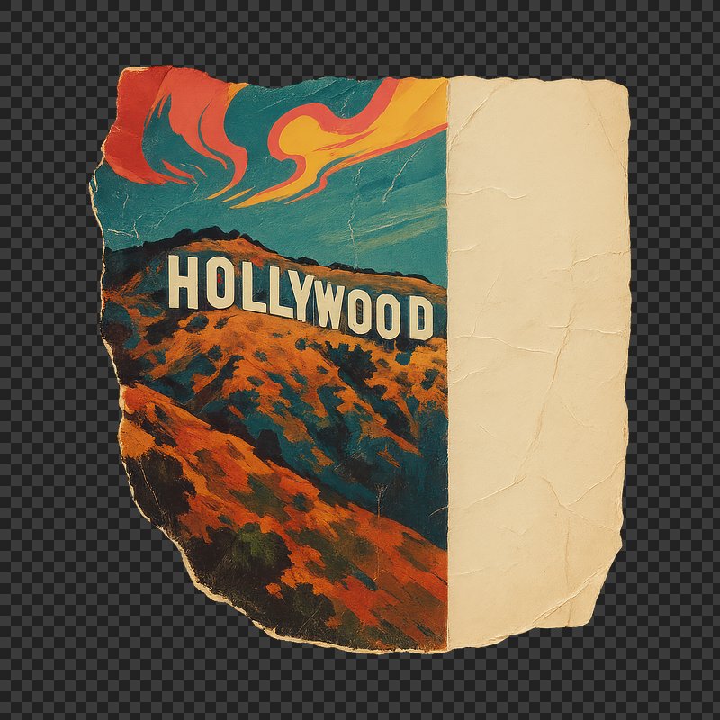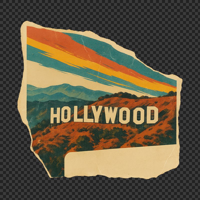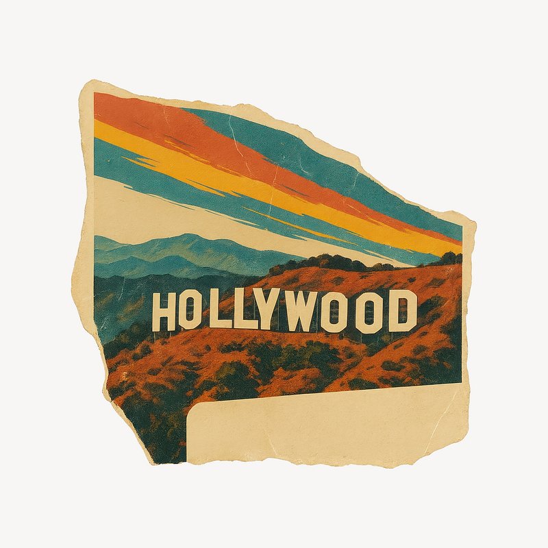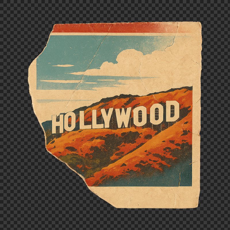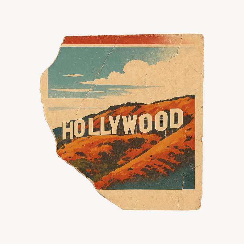 Vintage Hollywood sign artwork. https://www.rawpixel.com/image/24569409/vintage-hollywood-sign-artworkView license