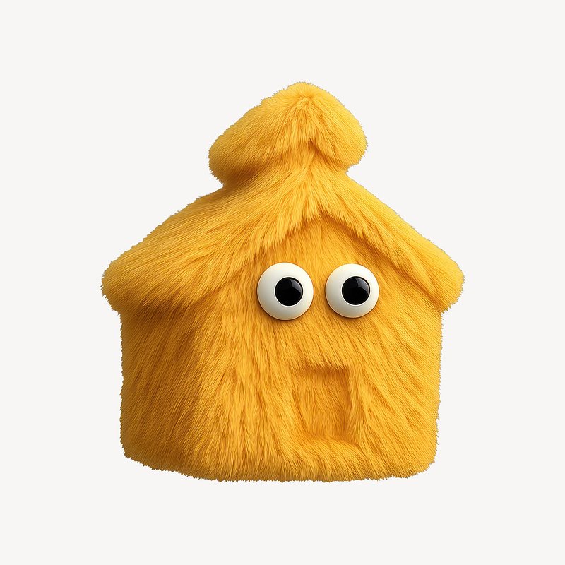 Furry yellow house with eyes. https://www.rawpixel.com/image/24671432/furry-yellow-house-with-eyesView license