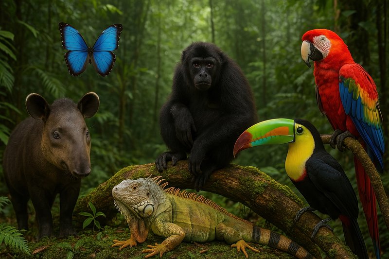 Diverse rainforest wildlife scene https://www.rawpixel.com/image/17507765/diverse-rainforest-wildlife-sceneView license