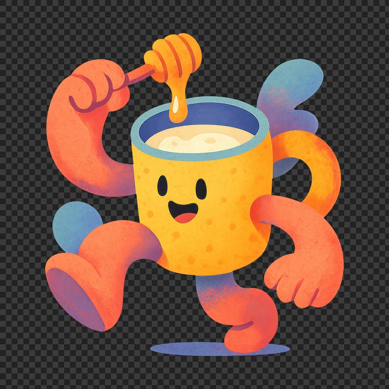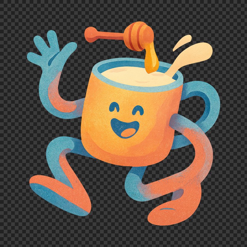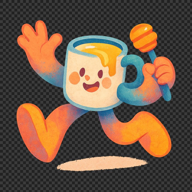 PNG Playful mug character with honey. https://www.rawpixel.com/image/22202215/png-playful-mug-character-with-honeyView license