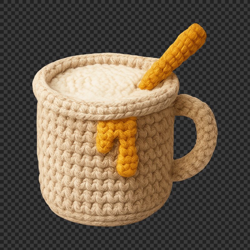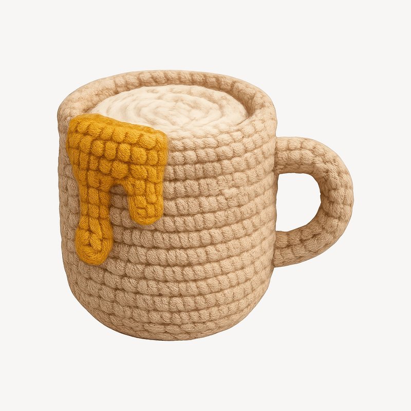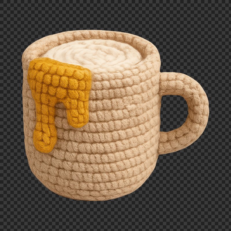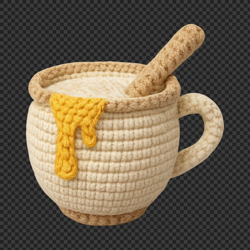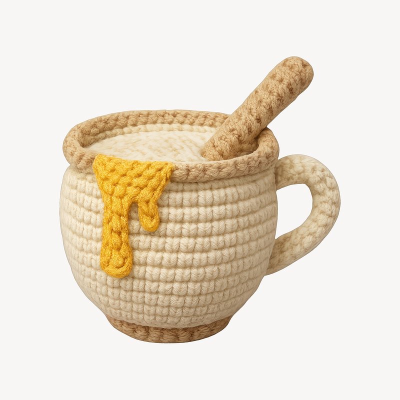 PNG Crochet cup with honey spill. https://www.rawpixel.com/image/23068494/png-crochet-cup-with-honey-spillView license