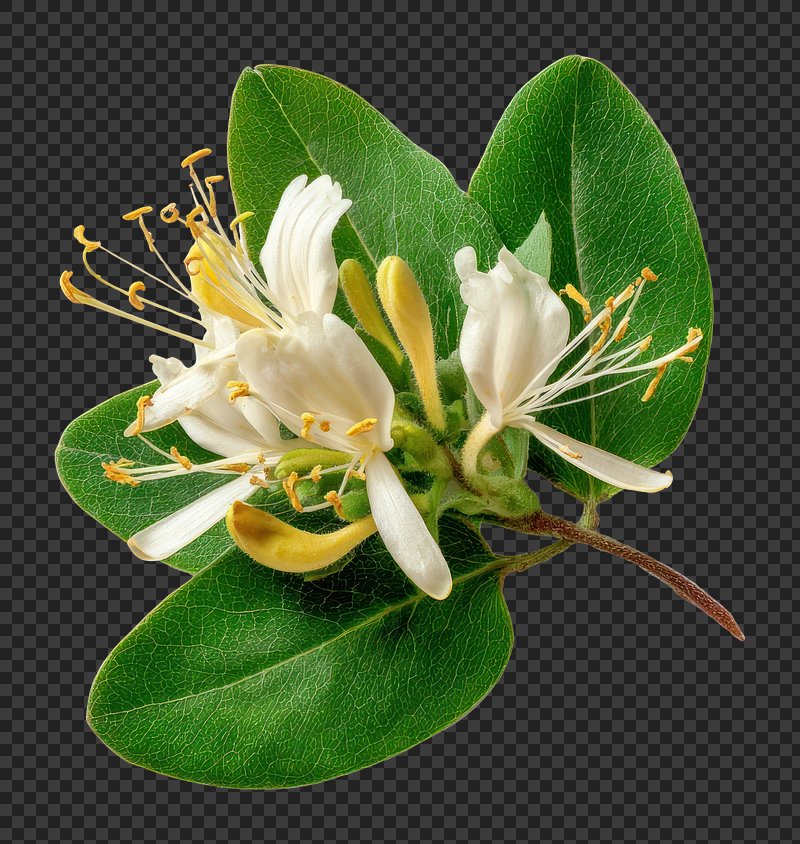 PNG Honeysuckle flowers leaves leaf. https://www.rawpixel.com/image/18327788/png-honeysuckle-flowers-leaves-leafView license