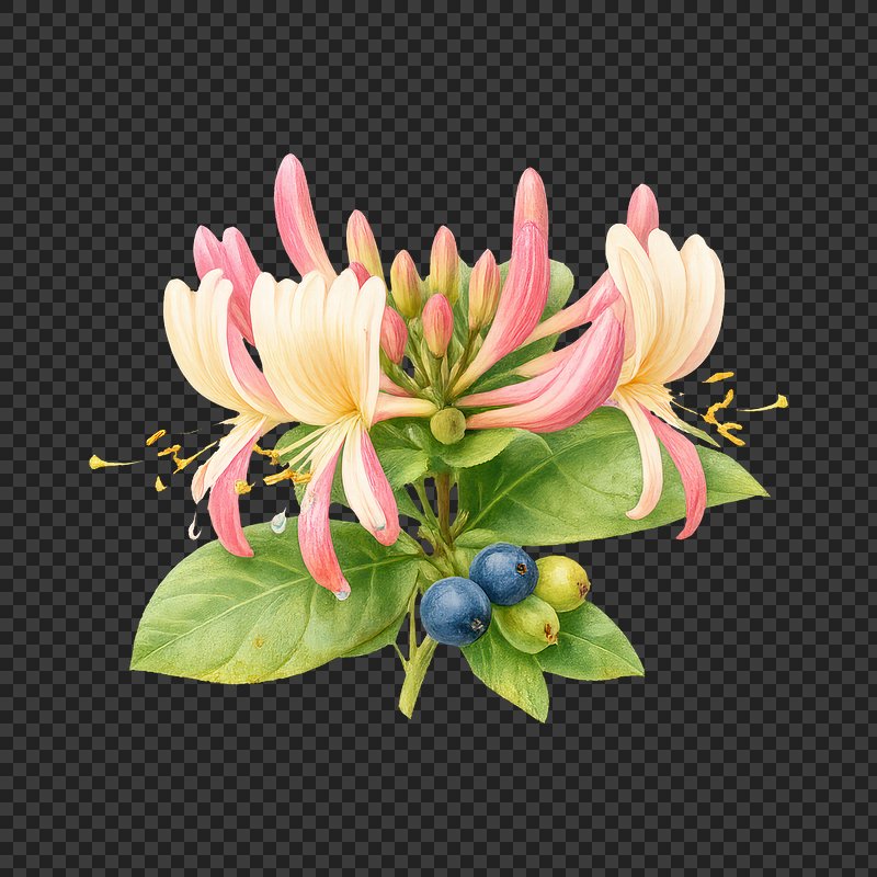 PNG Delicate honeysuckle with berries. https://www.rawpixel.com/image/25384773/png-delicate-honeysuckle-with-berriesView license