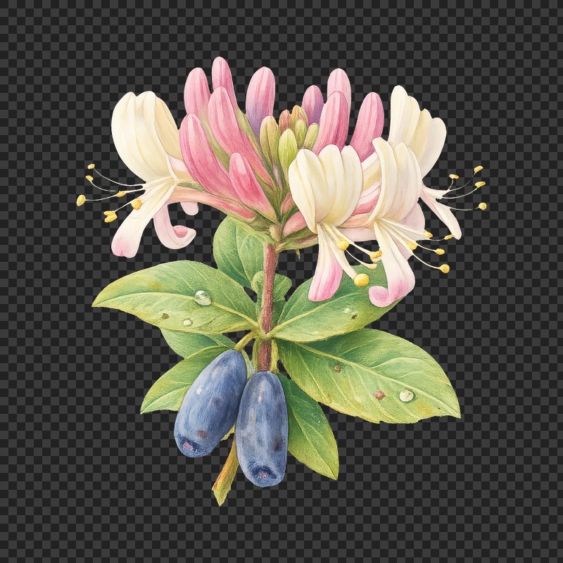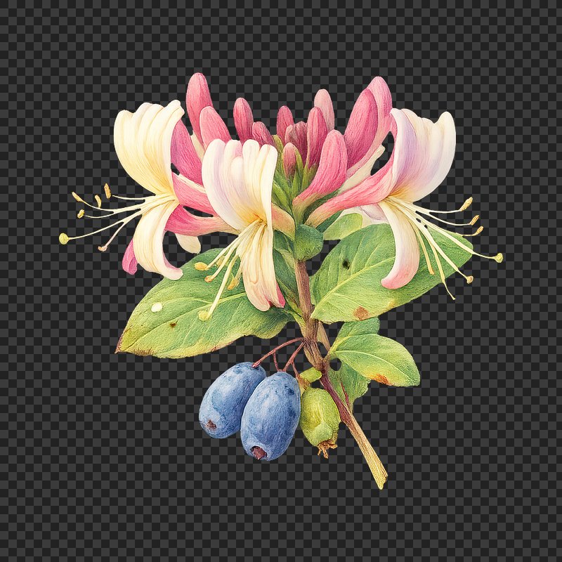 PNG Vibrant honeysuckle and berries illustration. https://www.rawpixel.com/image/25384858/png-vibrant-honeysuckle-and-berries-illustrationView license