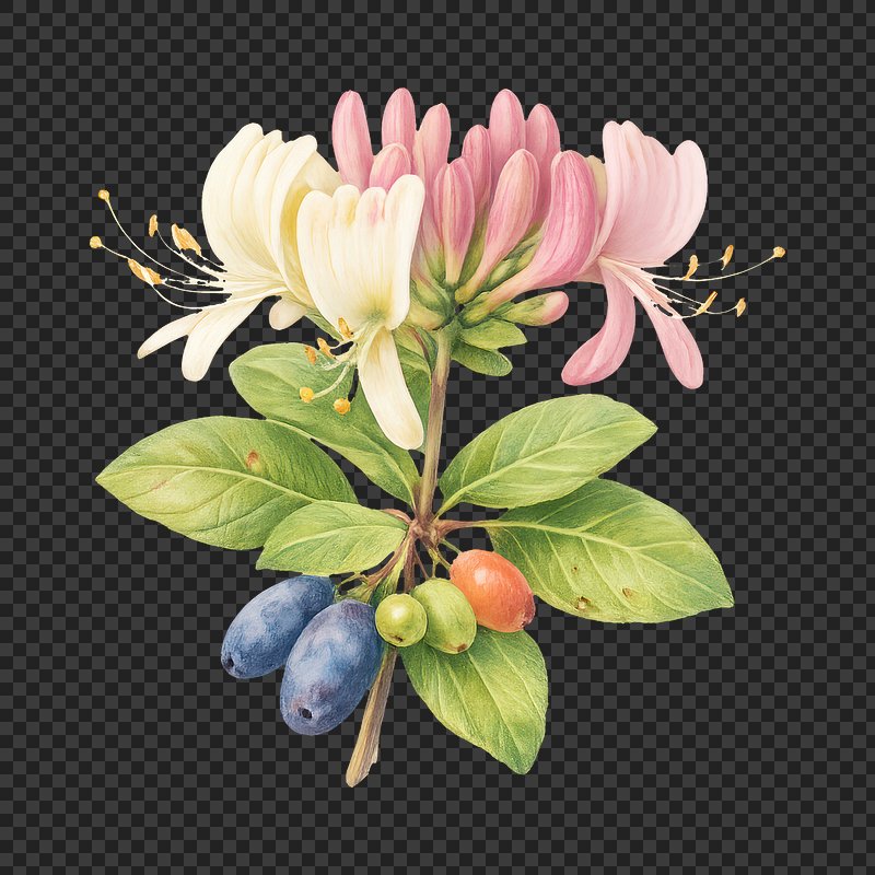 PNG Vibrant honeysuckle with berries https://www.rawpixel.com/image/25385012/png-vibrant-honeysuckle-with-berriesView license
