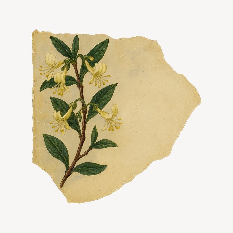 Honeysuckle flower psd vintage botanical art print, remixed from artworks by Pierre-Joseph Redouté https://www.rawpixel.com/image/2868355/premium-illustration-psd-redoute-watercolor-flowers-leaves-honeysuckle-flowerView license