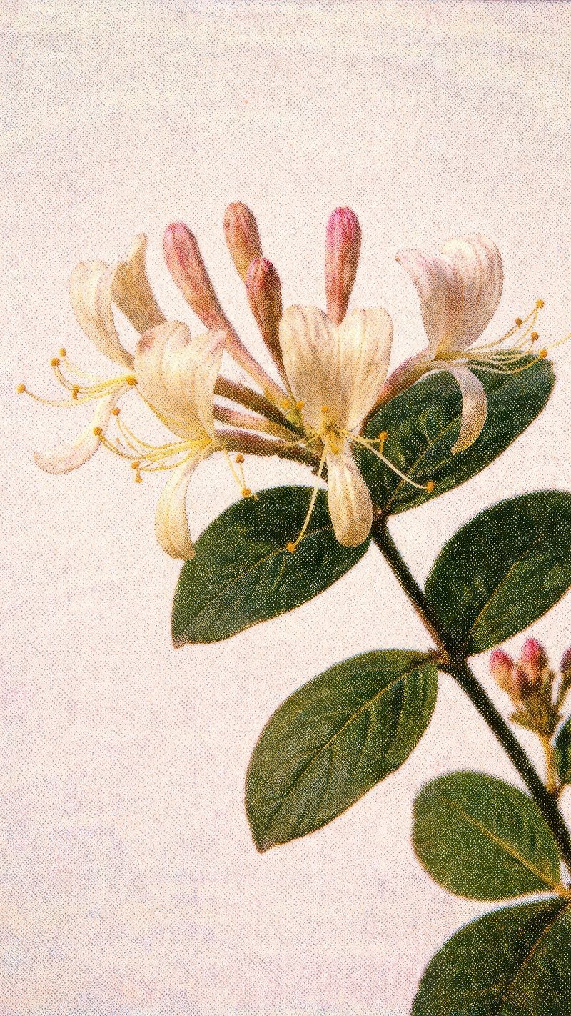 Elegant honeysuckle on beige mobile wallpaper https://www.rawpixel.com/image/25467654/elegant-honeysuckle-beige-mobile-wallpaperView license