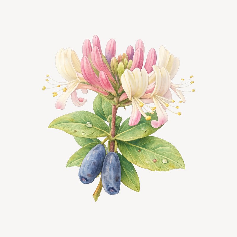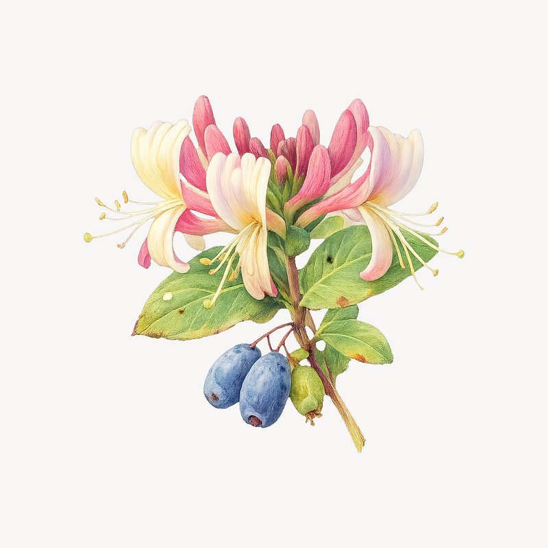 Vibrant honeysuckle and berries illustration. https://www.rawpixel.com/image/25457527/vibrant-honeysuckle-and-berries-illustrationView license