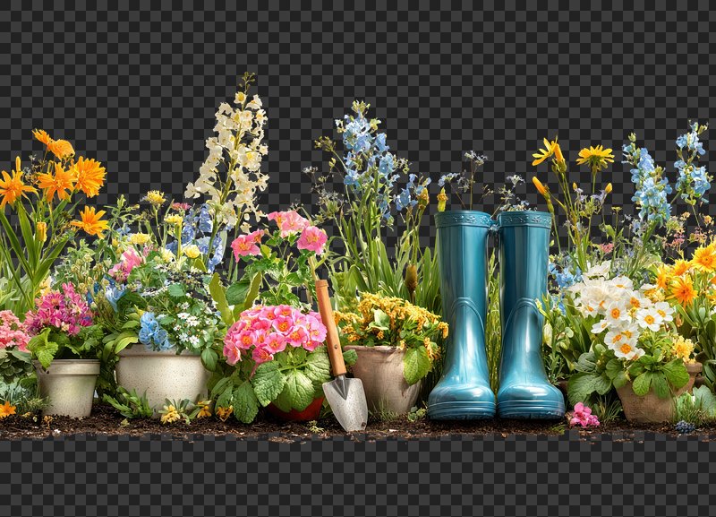 PNG Vibrant garden with yellow boots https://www.rawpixel.com/image/24966196/png-vibrant-garden-with-yellow-bootsView license