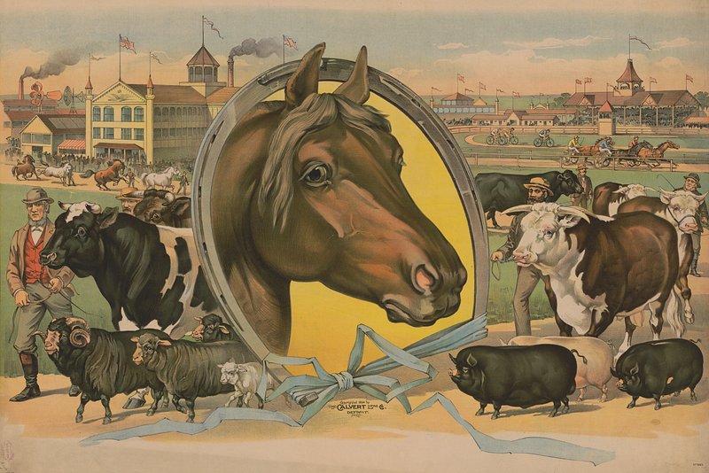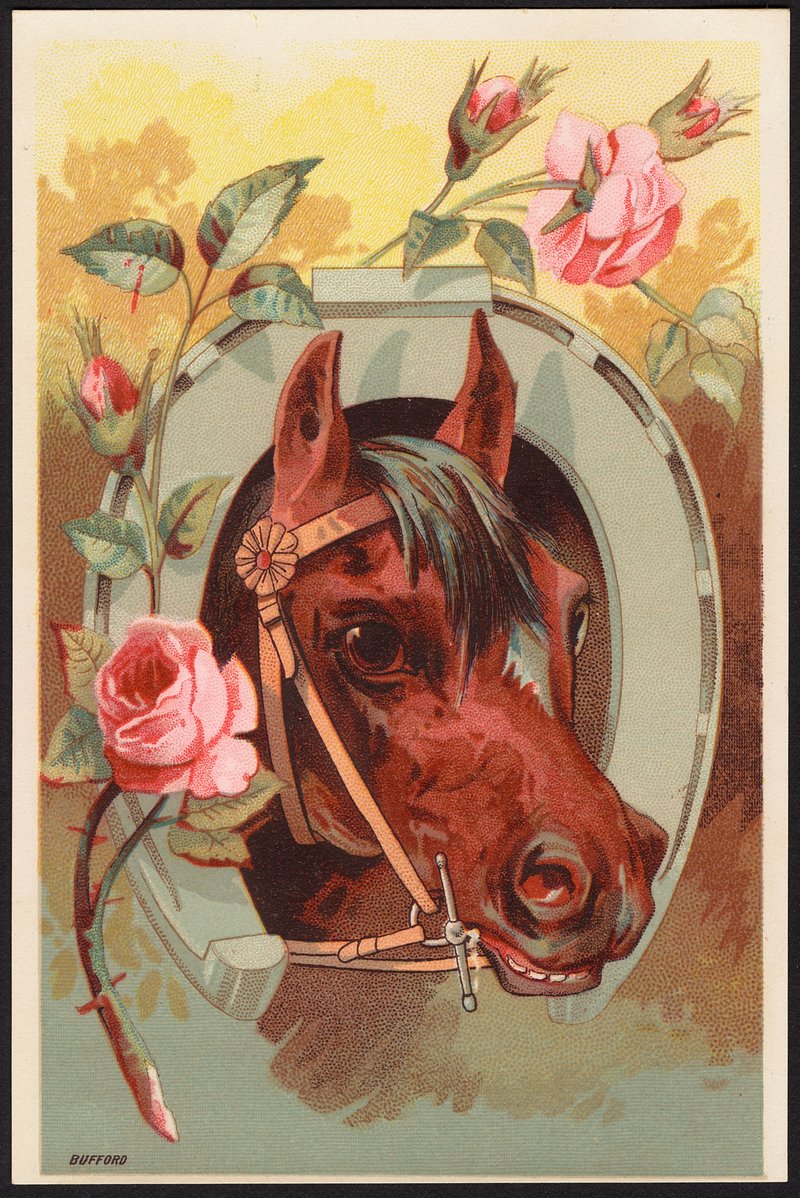 [Horse framed by a horseshoe with fair buildings and a racetrack in the background] https://www.rawpixel.com/image/7689324/image-background-art-vintageFree Image from public domain license
