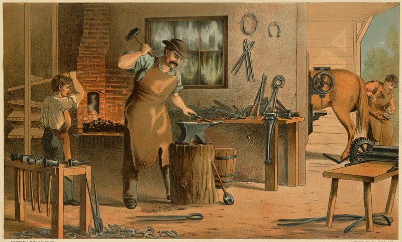 Prang's aids to object teaching - trades and occupations - plate 4 - blacksmith https://www.rawpixel.com/image/8906921/image-art-vintage-public-domainFree Image from public domain license