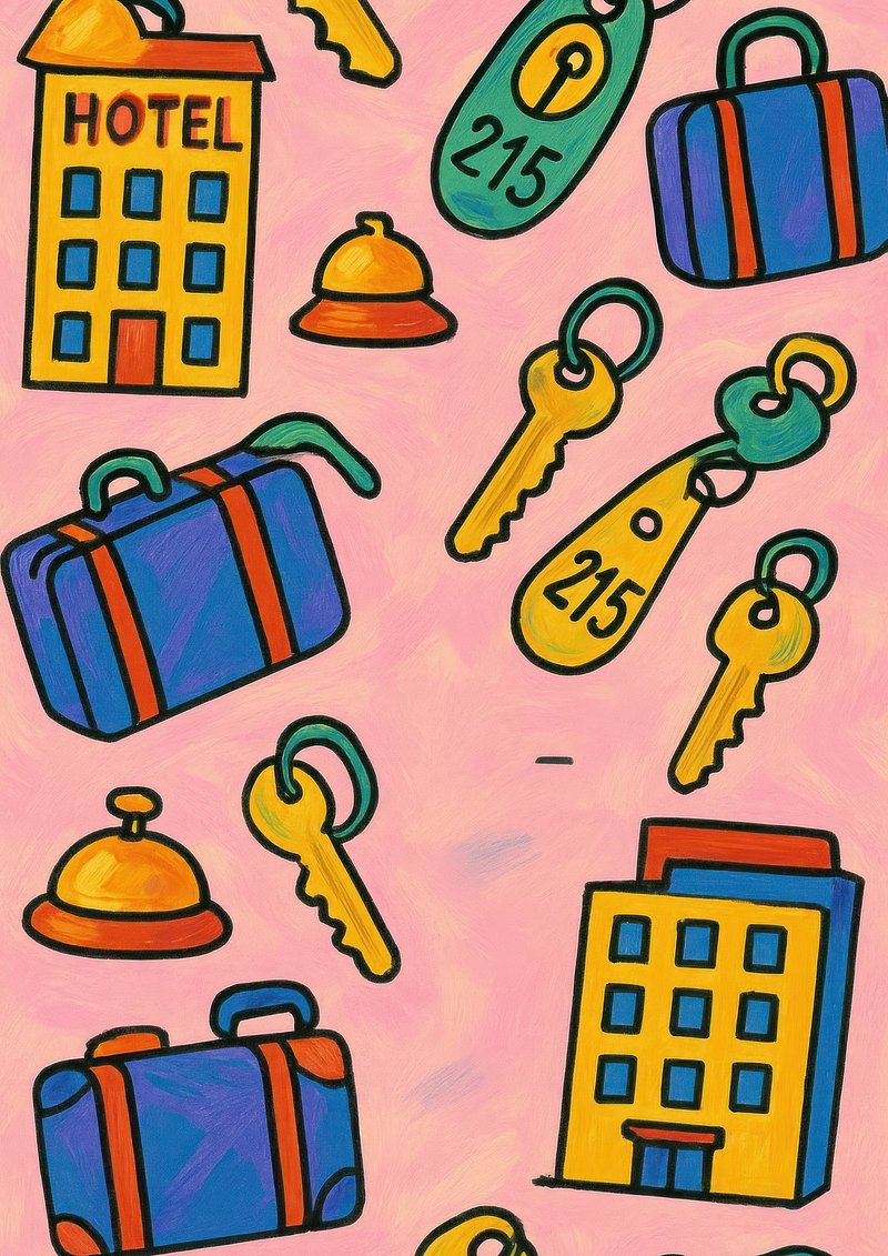 Colorful hotel-themed pattern https://www.rawpixel.com/image/25417905/colorful-hotel-themed-patternView license