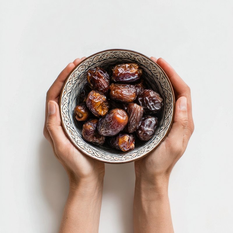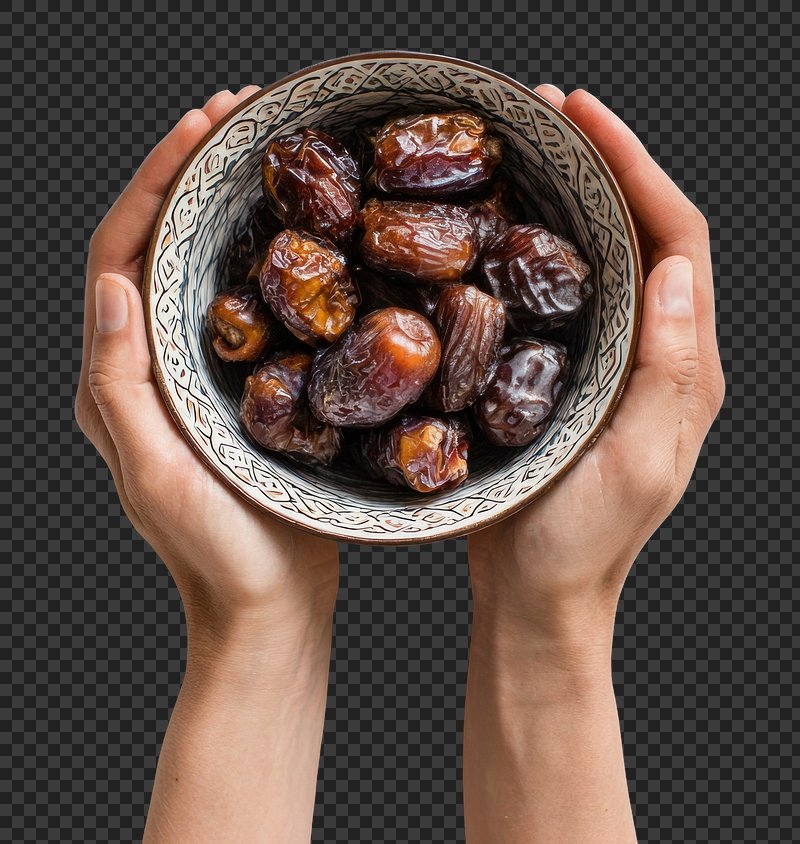 Hands holding bowl of dates. https://www.rawpixel.com/image/24964277/hands-holding-bowl-datesView license