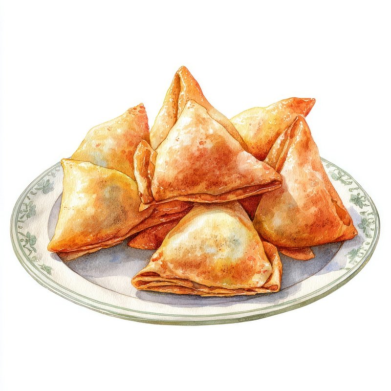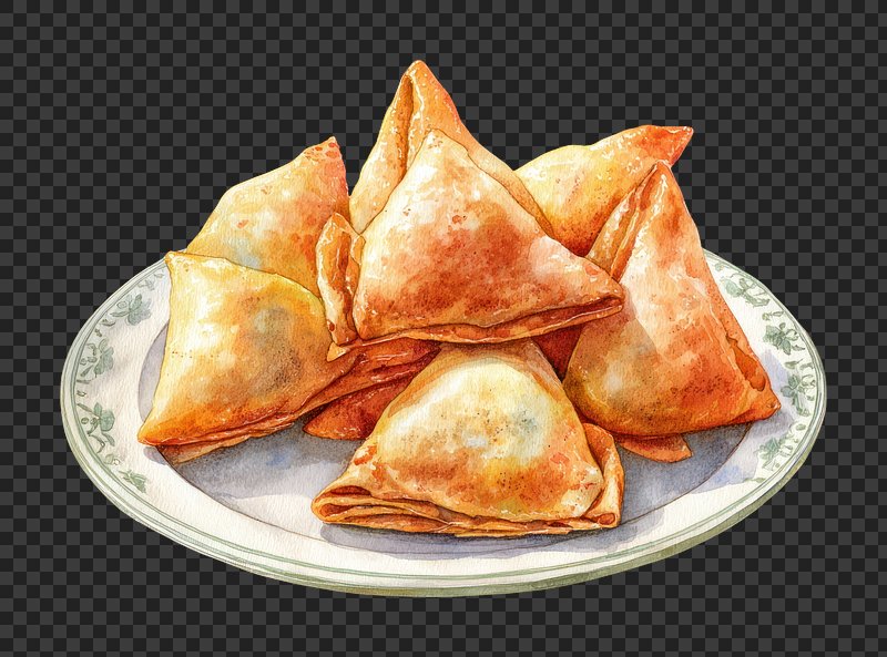 Watercolor samosa with cilantro garnish. https://www.rawpixel.com/image/24962228/watercolor-samosa-with-cilantro-garnishView license