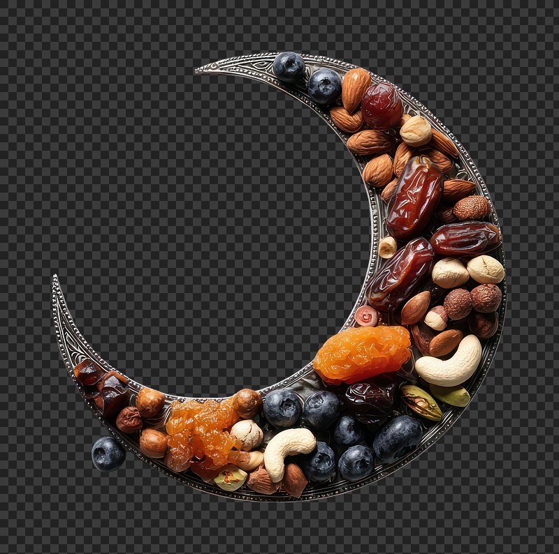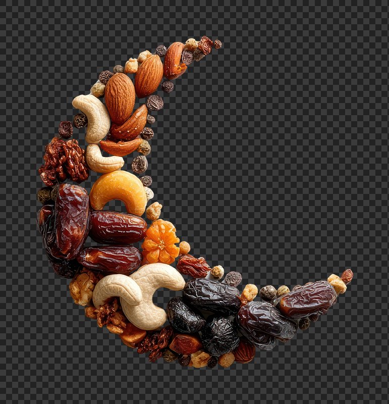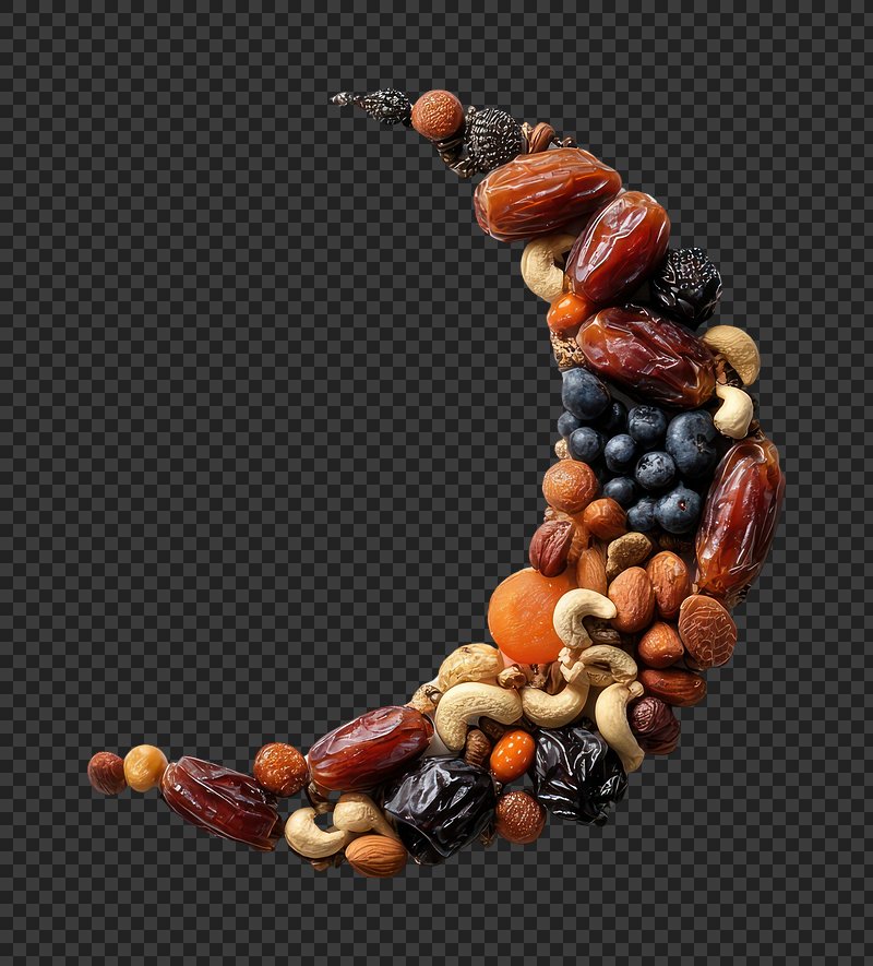 PNG Dried fruits crescent moon design. https://www.rawpixel.com/image/25245096/png-dried-fruits-crescent-moon-designView license