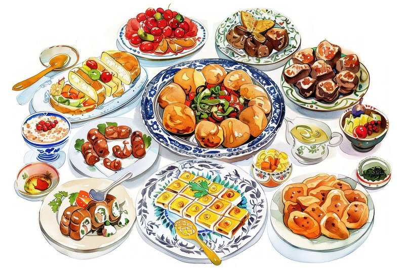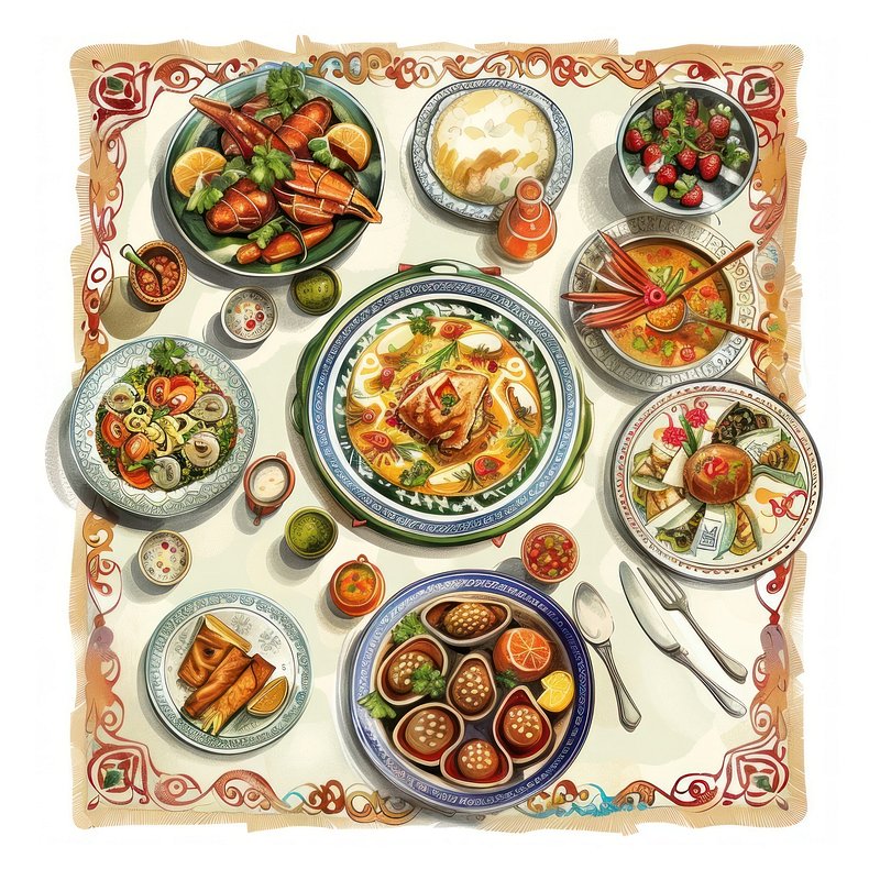 Vibrant feast illustration with dishes. https://www.rawpixel.com/image/24892406/vibrant-feast-illustration-with-dishesView license