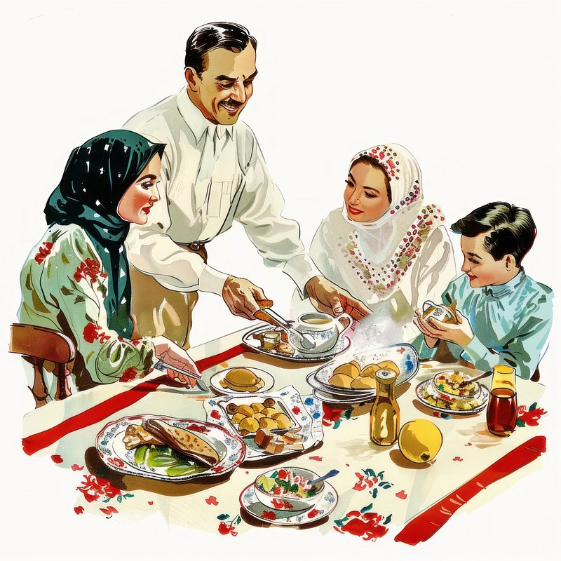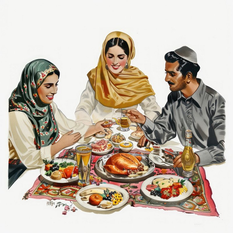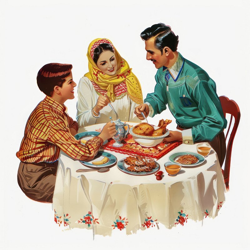 Cultural family dinner illustration. https://www.rawpixel.com/image/24892371/cultural-family-dinner-illustrationView license
