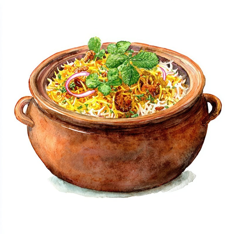 Traditional clay pot biryani illustration. https://www.rawpixel.com/image/24962737/traditional-clay-pot-biryani-illustrationView license
