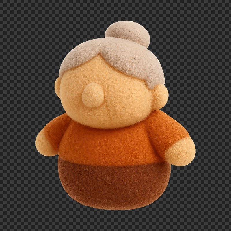 PNG Cute felt grandmother figurine. https://www.rawpixel.com/image/23302686/png-cute-felt-grandmother-figurineView license