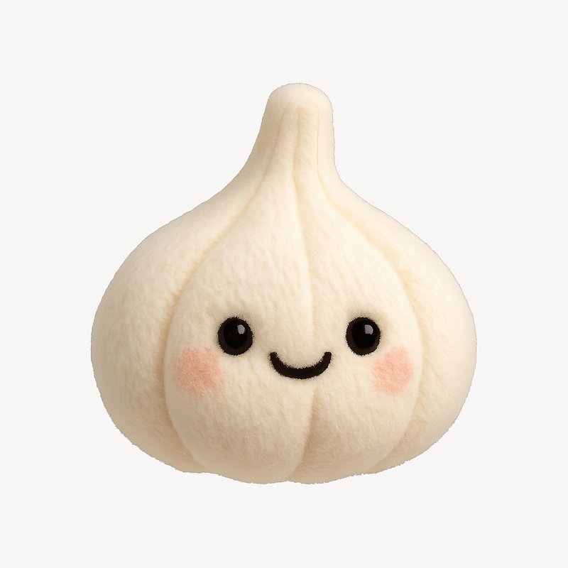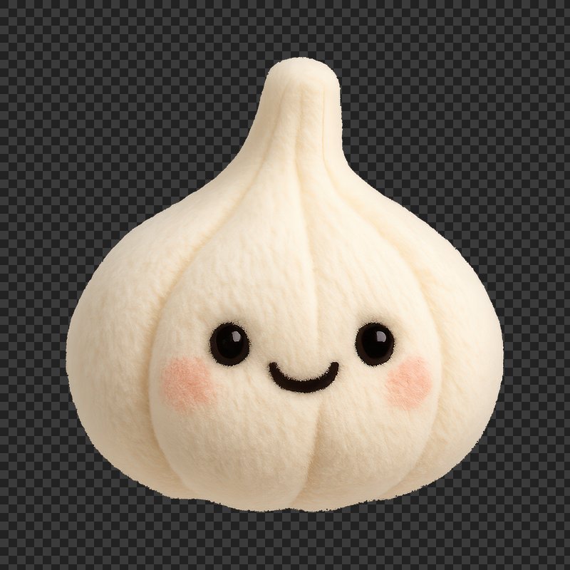 Cute plush garlic character https://www.rawpixel.com/image/23483541/cute-plush-garlic-characterView license