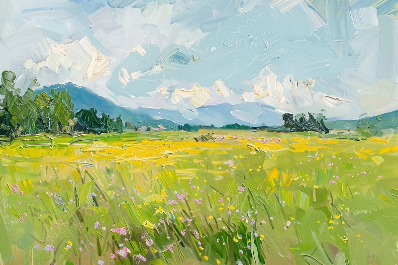 Field of wildflowers landscape painting fields. https://www.rawpixel.com/image/17242324/field-wildflowers-landscape-painting-fieldsView license