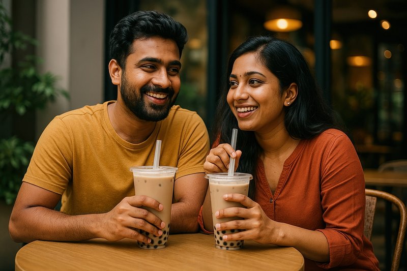 Couple enjoying bubble tea together. https://www.rawpixel.com/image/17471345/couple-enjoying-bubble-tea-togetherView license