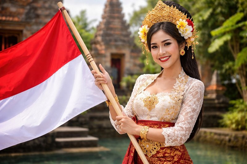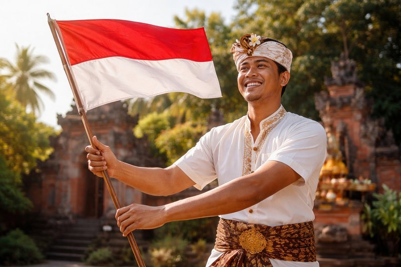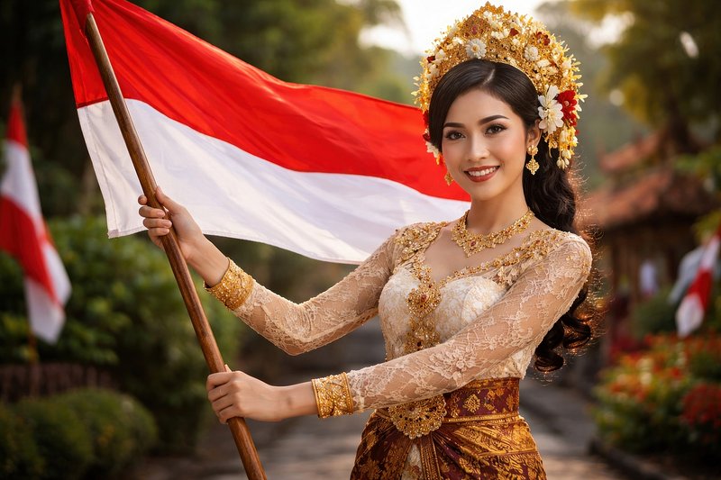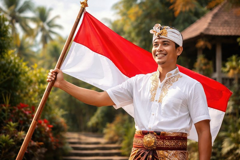 Traditional attire with Indonesian flag https://www.rawpixel.com/image/25176075/traditional-attire-with-indonesian-flagView license