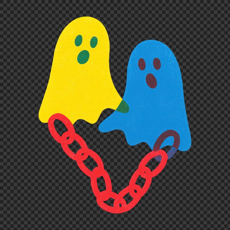 PNG Colorful ghostly friends linked. https://www.rawpixel.com/image/21804661/png-colorful-ghostly-friends-linkedView license