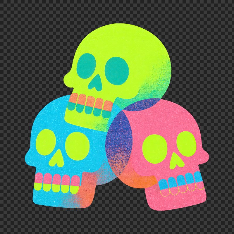 PNG Colorful vibrant skull illustration. https://www.rawpixel.com/image/21804679/png-colorful-vibrant-skull-illustrationView license