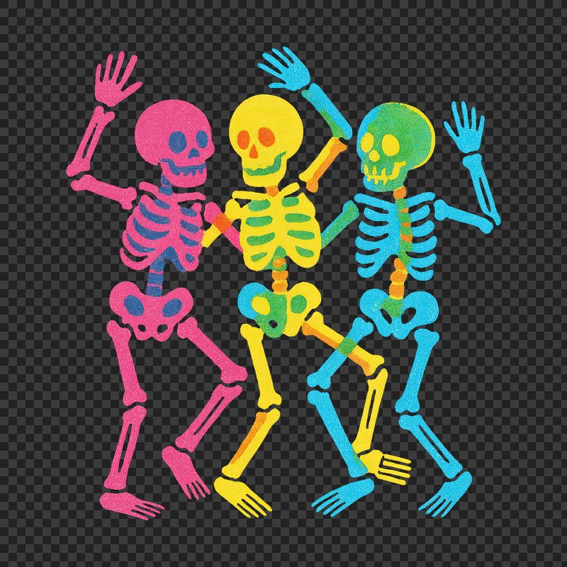 PNG Colorful dancing skeletons illustration. https://www.rawpixel.com/image/21804739/png-colorful-dancing-skeletons-illustrationView license