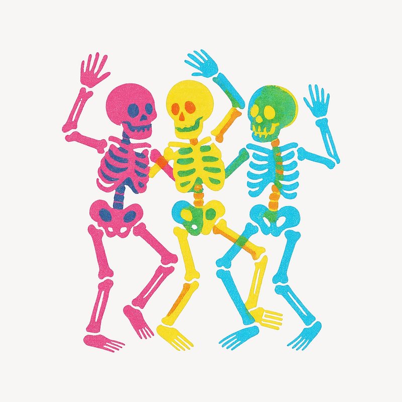 Colorful dancing skeletons illustration. https://www.rawpixel.com/image/22343108/colorful-dancing-skeletons-illustrationView license