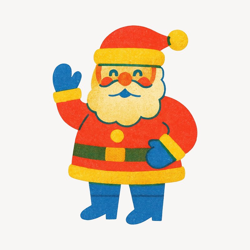 Cheerful Santa waving illustration. https://www.rawpixel.com/image/22329105/cheerful-santa-waving-illustrationView license