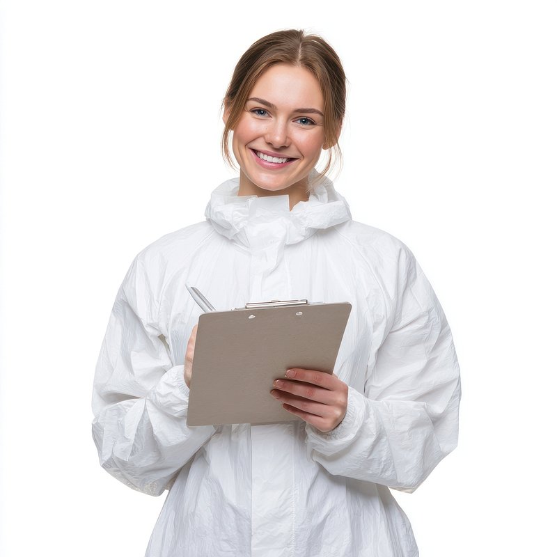 Woman wearing a white hazmat professional background clipboard. https://www.rawpixel.com/image/18310173/woman-wearing-white-hazmat-professional-background-clipboardView license