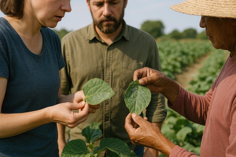 Farmers examining plant leaves https://www.rawpixel.com/image/18561975/farmers-examining-plant-leavesView license