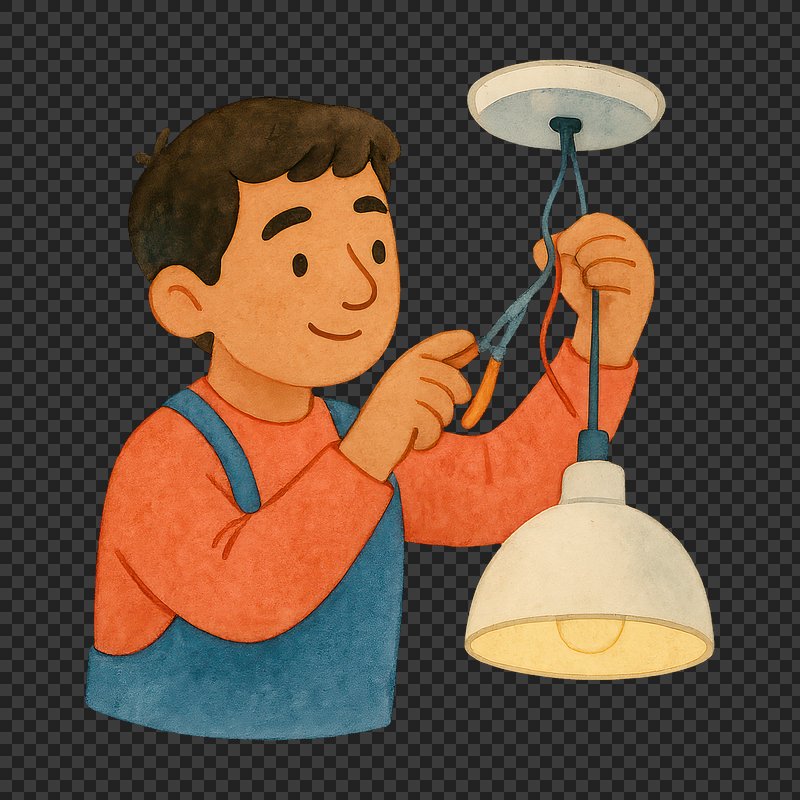 PNG Cartoon electrician fixing lamp. https://www.rawpixel.com/image/19213167/png-cartoon-electrician-fixing-lampView license