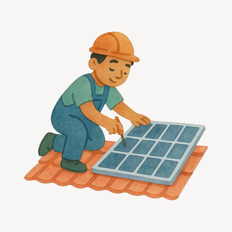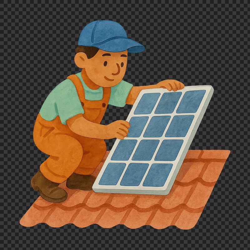 Cartoon worker installing solar panel. https://www.rawpixel.com/image/20671262/cartoon-worker-installing-solar-panelView license