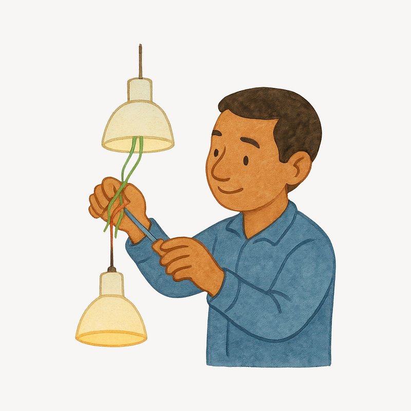 Electrician adjusting hanging lights. https://www.rawpixel.com/image/20659702/electrician-adjusting-hanging-lightsView license