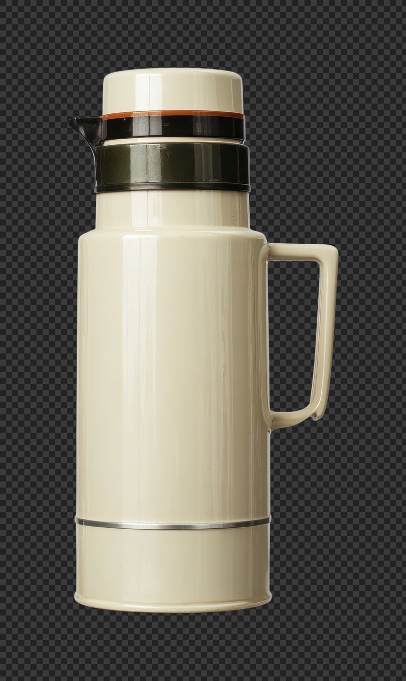 PNG Vintage beige thermos with handle. https://www.rawpixel.com/image/21563282/png-vintage-beige-thermos-with-handleView license