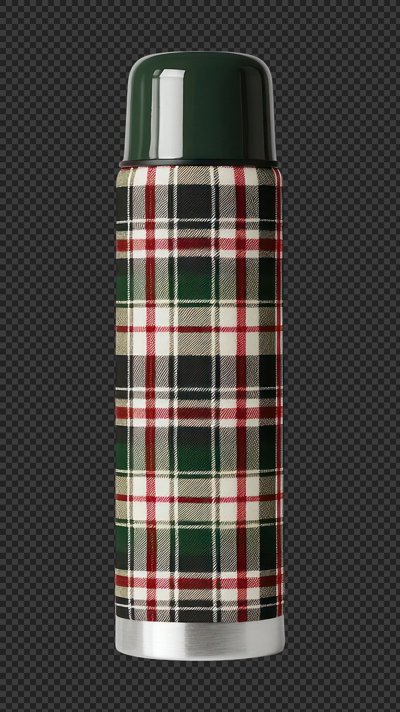 PNG Plaid thermos with green lid. https://www.rawpixel.com/image/21560446/png-plaid-thermos-with-green-lidView license